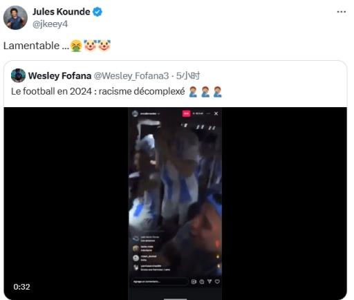 此事引起轩然大波,引发舆论挞伐。法国后卫孔德在社媒表示:“可悲 …