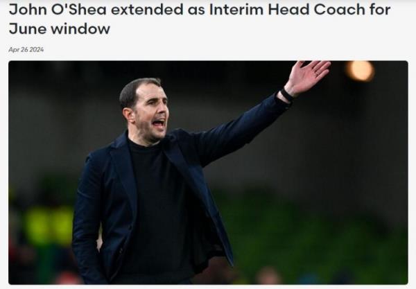 4月26日讯 爱尔兰足协官方消息,延长国家队临时主教练约翰-奥谢的任期至今年6月,在该月他将率队参加与匈牙利、葡萄牙的两场友谊赛。